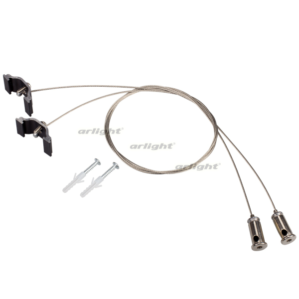 Стальной тросик с черным держателем в паз и под винт для подвешивания профиля ARH-LINE-6085 BLACK. В пакете 2 тросика с держателями (каждый длиной 2 м), 2 шурупа с дюбелем. Цена за 1шт тросик.