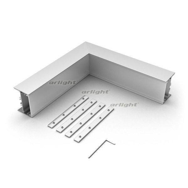 Угол в сборе, для профиля SL-LINE-5035. Свечение внутрь. В комплекте угол с экраном, соединители, винты, шестигранный ключ.