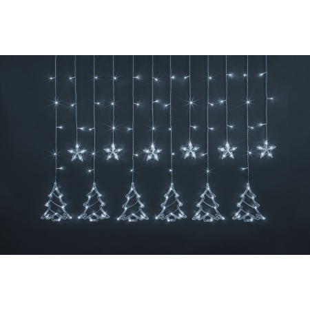 Гирлянда светодиодная «Бахрома» звезды и елочки 2,5 х 1 метра. Цвет  белый. 230В. Navigator