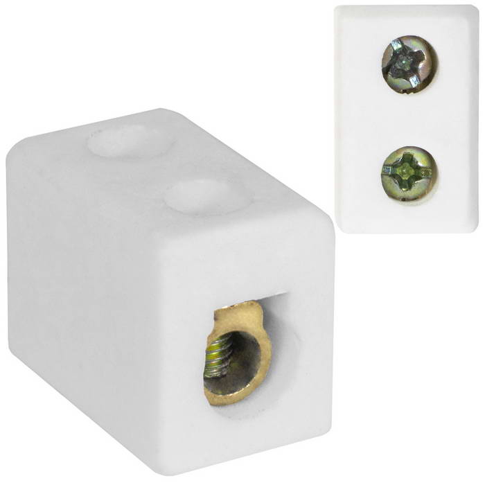 Клемма винтовая керамическая RUICHI КВК-1-12, для проводов сечением 2.5 мм2, 1x1 контакт, 400 В, 12 А, -40...+450 °C, белая предназначена для соединения проводов, которые могут находиться под воздействием высоких температур. Изготовлена из качественного изоляционного материала, который обладает высокой стойкостью на пробой даже при воздействии влаги, устойчив к токам поверхностной утечки, не подвержена горению.