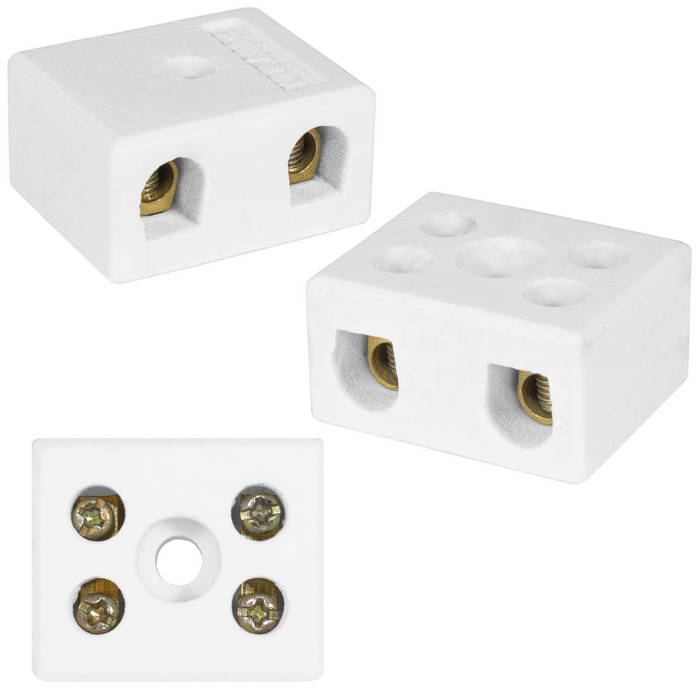 Клемма винтовая керамическая RUICHI КВК-2-16, для проводов сечением 4 мм2, 2x2 контакта, 400 В, 16 А, -40...+450 °C, белая предназначена для соединения проводов, которые могут находиться под воздействием высоких температур. Изготовлена из качественного изоляционного материала, который обладает высокой стойкостью на пробой даже при воздействии влаги, устойчив к токам поверхностной утечки, не подвержена горению.