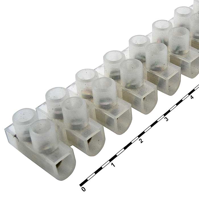 Клеммная колодка винтовая типа U RUICHI TBS-10A, 12 контактов, 10 А, 400 В, корпус нейлоновый белый — электроустановочное изделие, предназначенное для соединения проводов.