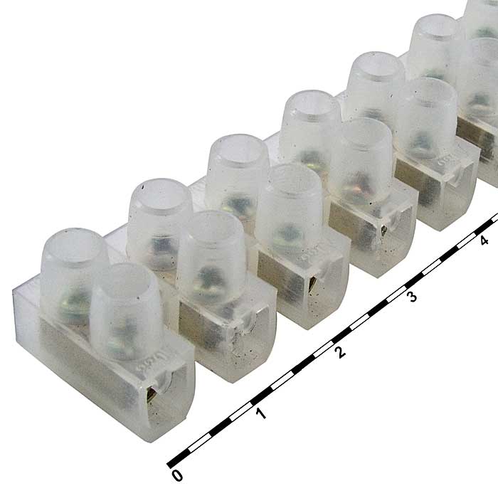 Клеммная колодка винтовая типа U RUICHI TBS-6A, 12 контактов, 6 А, 400 В, корпус нейлоновый белый — электроустановочное изделие, предназначенное для соединения проводов.