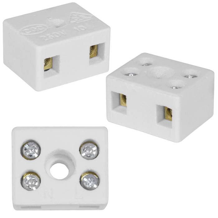 Клемма винтовая керамическая RUICHI КВК-2-5, для проводов сечением 2.5 мм2, 2x2 контакта, 400 В, 5 А, -40...+450 °C, белая предназначена для соединения проводов, которые могут находиться под воздействием высоких температур. Изготовлена из качественного изоляционного материала, который обладает высокой стойкостью на пробой даже при воздействии влаги, устойчив к токам поверхностной утечки, не подвержена горению.