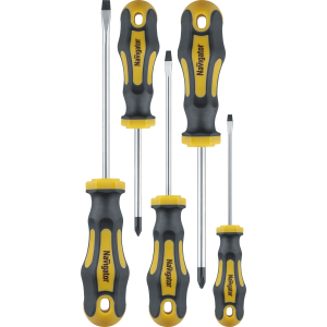 Набор из пяти отверток от производителя Navigator. Комплектность: SL3 х 75 мм, SL4 х 100 мм, SL5.5 х 125 мм, PH1 х 80 мм, PH2 х 100 мм.