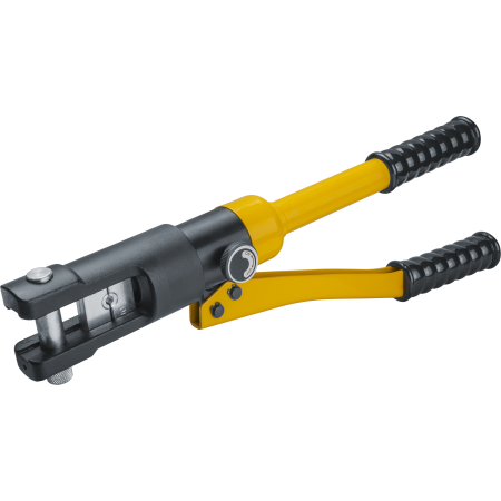 Пресс гидравлический ручной с автоматическим сбросом давления. Ди­апа­зон оп­рессо­выва­ния: мед­ные/алю­мини­евые на­конеч­ни­ки 16 - 120 мм2. Ком­плект смен­ных мат­риц, мм2  16, 25, 35, 50, 70, 95, 120