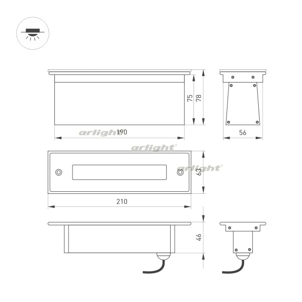 Встраиваемый светодиодный светильник для грунта и пола. Мощность 8Вт, световой поток 430лм, цвет ДНЕВНОЙ 4000К. CRI(Ra)>80, угол 120° асимметричный, наклон луча 30°. Прямоугольный влагозащищенный корпус IP67, нержавеющая сталь 316. Экран закалённое стекло. Питание AC230V, 8Вт. Размер ДxШxВ 210x63x78мм. Установка в отверстие ДxШxВ 190x56x75мм. Встроенный драйвер (DC300mA, 18V).