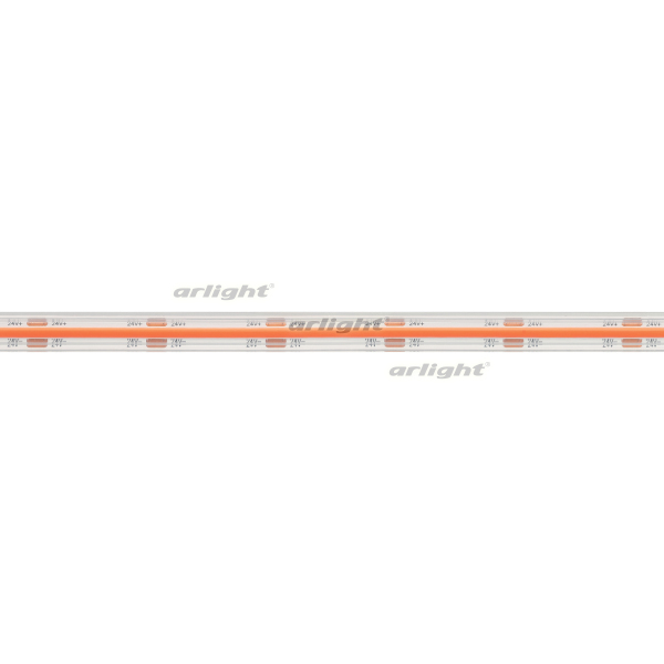 Герметичная IP67 (экструзия) лента COB сплошной засветки без видимых светодиодов. Кристаллы CSP 544 шт/м. Цвет свечения КРАСНЫЙ, угол 140°. Мощность 11.5 Вт/м, питание