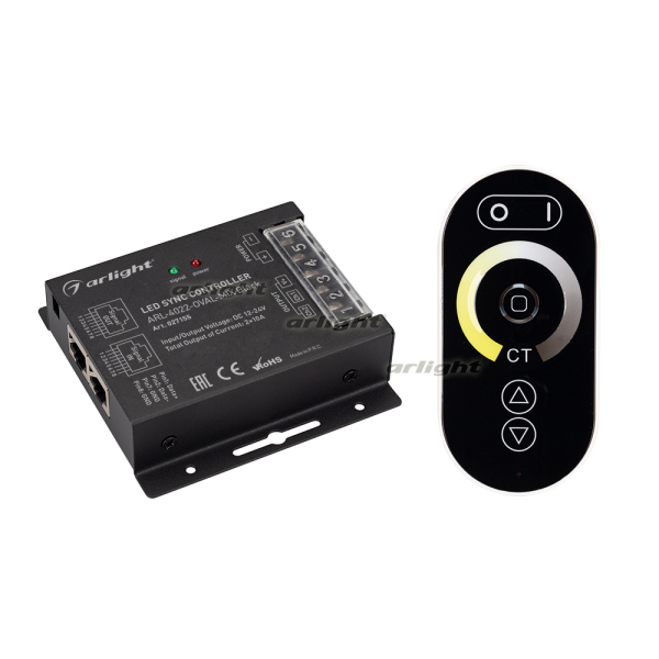 Комплект: 2-канальный диммер с радиопультом черного цвета с сенсорным кольцом, для управления 2-цветной (мультибелой) светодиодной лентой. Этот комплект устройств позволит легко и удобно регулировать цветовую температуру, яркость освещения и осуществлять включение и выключение света. Питание диммера имеет диапазон напряжений от 12В до 24В, максимальный ток 10А на 1 канал, максимальная мощность 240-480Вт (в зависимости от напряжения питания). Диммер имеет порты RJ45 для возможности проводного соединения устройств между собой и синхронизации их работы. При потере питания диммера последнее состояние яркости и цвета сохраняется. Питание пульта осуществляется от 3-х батареек ААА. Габариты диммера составляют 91x88x24мм, габариты пульта составляют 114х56х23мм.