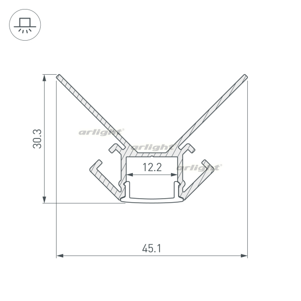 Алюминиевый анодированный угловой профиль для светодиодных лент и линеек, под строительную отделку или плитку. Фиксируется при помощи строительной смеси. Декоративная контурная подсветка внешних углов стен и конструкций. Габаритные размеры (L×W×H): 2000x45,1x30,3 мм. Ширина площадки для ленты 12 мм. Экраны, заглушки и другие аксессуары приобретаются отдельно. Цена за 1 метр.