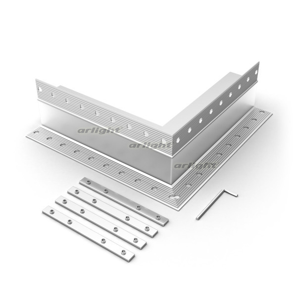Угол в сборе, для профиля SL-LINIA32-FANTOM-EDGE. Свечение наружу. В комплекте угол с экраном, соединители, винты, шестигранный ключ.