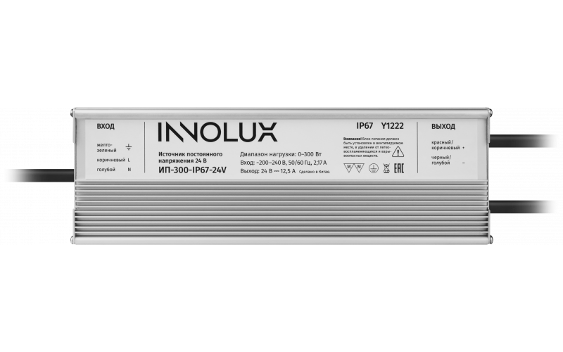 Компактный металлический анодированный корпус в исполнении графит. Заполнен теплопроводящим компаундом. Многожильный проводник для подключения питающей сети и нагрузки.