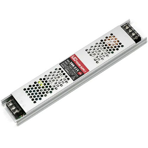 Источник стабилизированного напряжения 24V 300W 12,5A в защитном кожухе. Степень защиты IP20. Входное напряжение 190-240V, выходное напряжение 24V. Размеры 286x53x22мм. Тонкий алюминиевый корпус. Клеммная винтовая колодка для подключения питающей сети и нагрузки.