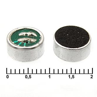 Электретный микрофон RUICHI EM-9745 – микрофон с принципом действия, сходным с микрофонами конденсаторного типа, использующий в качестве неподвижной обкладки конденсатора и источника постоянного напряжения пластину из электрета. Используется способность этих материалов сохранять поверхностный заряд в течение длительного времени. Электретный микрофон в основном устанавливается в современных смартфонах, ноутбуках и домофонах из-за их компактности.