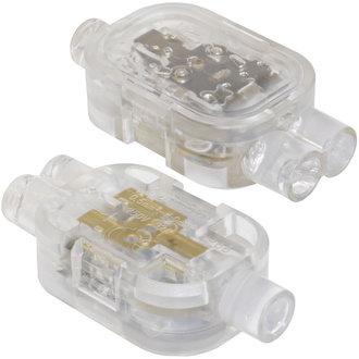 Клемма соединительная водонепроницаемая RUICHI DF-T12 — это водонепроницаемое устройство для соединения проводов без пайки, предназначенное для использования в условиях повышенной влажности или на улице. К основным особенностям данных клемм относится: - герметичность: внутри клемма заполнена клеевым гелем, обеспечивающим защиту от влаги и коррозии. - простота монтажа: самозажимной механизм, не требующий специального инструмента, достаточно зачистить провод на 11 мм. Клеммы данной серии широко используются в уличном освещение, в помещениях с повышенной влажностью, в слаботочных и силовых сетях.