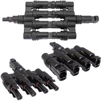 Коннектор для солнечных батарей RUICHI DF-2601A-4P (MC4Y 3x1), универсальный применяется в промышленных секторах для соединения солнечных батарей между собой. Данный тип разъема MC4 подходит для коммутации между собой батарей различных производителей.