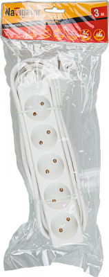 Удлинитель 5 мест 6А пластик белый шнур 3м ШВВП IP20 Navigator NPE-S