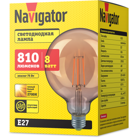 Светодиодные энергосберегающие лампы общего и декоративного освещения Navigator серии NLL «FILAMENT» повторяют форму и размеры лампы накаливания типа «шар». Идеально подходят к любому светильнику, в котором используется данный тип лампы.