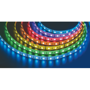 Светодиодная лента. Цвет RGB. Светодиоды SMD 5050, 60 шт/м. Питание 12 В, мощность 4,8 Вт/м, угол 120°. IP20. Катушка 5 м. Navigator