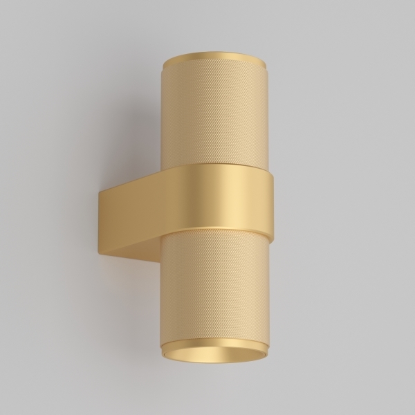 Настенный светильник со свечением в верхнюю и нижнюю полусферу. Мощность 6x2 Вт, св. поток 900 лм, 68 лм/Вт, теплый 3000 K, CRI>90, угол 40°, напряжение питания 230 В. Золотистый фигурный корпус из алюминия, степень защиты IP20. Размер: длина 110 мм, ширина 72 мм, высота 180 мм. Монтаж накладной. Драйвер 27-42 В, 300 мА, пульсация <1%.