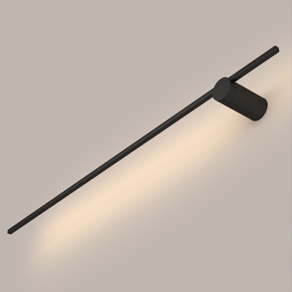 Декоративный настенный поворотный светильник. Мощность 10 Вт, св. поток 370 лм, 37 лм/Вт, теплый 3000 K, CRI>80, угол 110°, напряжение питания 230 В. Черный фигурный корпус из алюминия, экран из поликарбоната , степень защиты IP20. Размер: длина 900 мм, ширина 55 мм, высота 102 мм. Монтаж накладной. Драйвер 5-12 В, 700 мА, пульсация <0,5%. Драйвер 5-12 В, 700 мА, пульсация <0,5%. Возможность поворота светоизлучателя на 355 градусов.