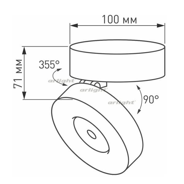 Накладной откидной поворотный светильник 12Вт. Цвет ТЕПЛЫЙ 3000K, св.поток 800лм, CRI(Ra)>90, угол свечения 24°, угол поворота 355°, угол наклона 90°. Корпус круглый, черный алюминий, IP40. Размер DxH Ø100x71мм. Питание AC 220-240V, 12Вт, драйвер встроенный (DC 300mA, 28-42V).