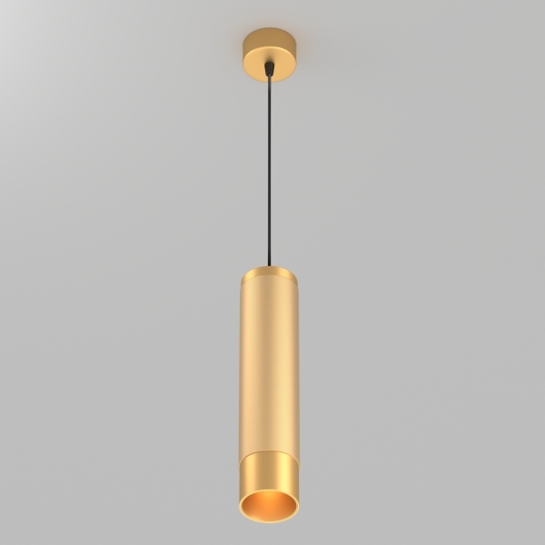Подвесной светильник. Мощность 13 Вт, св. поток 732 лм, 57 лм/Вт, теплый 3000 K, CRI>90, угол 50°, напряжение питания 230 В. Золотой круглый корпус из алюминия, рефлектор PC, степень защиты IP20. Размер: диаметр 70 мм, высота 300 мм, длина подвеса 1500 мм, размер чаши: диаметр 65 мм, высота 30 мм. Монтаж подвесной. Драйвер 24-42 В, 300 мА, пульсация <1%.