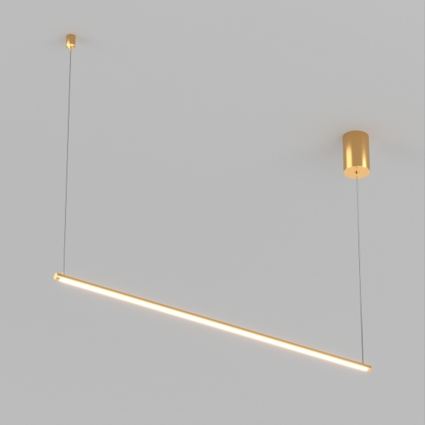 Декоративный подвесной светильник. Мощность 15 Вт, св. поток 531 лм, 35 лм/Вт, дневной 4000 K, CRI>90, угол 120°, напряжение питания 230 В. Золотой корпус из алюминия и металла, экран из силикона, степень защиты IP20. Размер: длина 910 мм, диаметр 16 мм, габариты чаши: длина 105 мм, диаметр 70 мм , длина тросса 1500 мм. Монтаж подвесной. Драйвер встроенный 22-40 В, 350 мА.