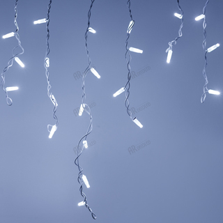 Светодиодная гирлянда БАХРОМА серии CLASSIC. Размер 2400x600 (длина 2400 мм, высота 600 мм). Цвет светодиодов БЕЛЫЙ (6000 К), эффект мерцания 180-200 вспышек в минуту, цвет мерцающих светодиодов БЕЛЫЙ (6000 К). Провод из белого ПВХ, диаметр 2.3 мм, 24 ниспадающие нити длиной от 200 до 600 мм. 88 светодиодов размером 7 мм, прозрачный вогнутый колпачок. Напряжение питания 230 В, потребляемая мощность 6 Вт, степень пылевлагозащиты IP65. Для эксплуатации необходимо приобрести аксессуар для подключения.