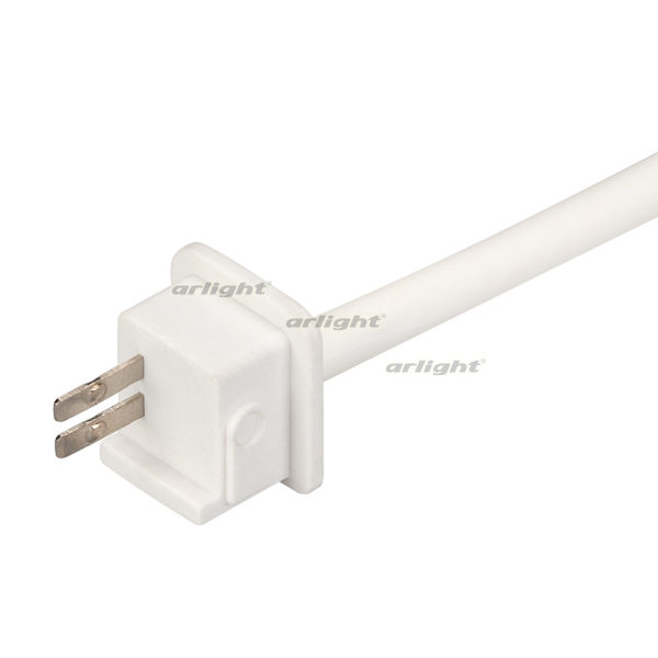 Герметичный коннектор питания для гибкого неона MOONLIGHT, сечение 17х12мм, цвет белый. Горизонтальный вывод провода. Подключение питания без пайки, IP67, длина провода питания 500мм.