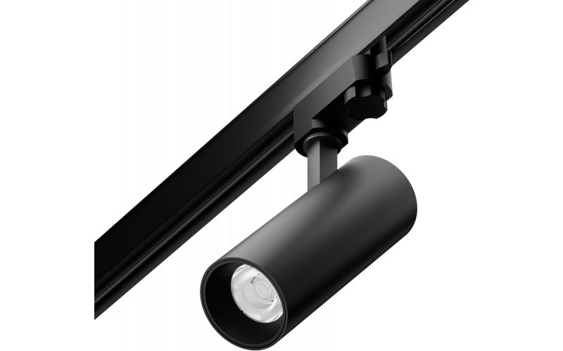 Светодиодный трековый светильник 3-фазный. Мощность 12 Вт, св. поток 1300 лм, 103 лм/Вт, теплый 2700 K, CRI>90, угол 30°, напряжение питания 230 В. Класс защиты от поражения током II. Коэффициент мощности >0.5. Черный круглый корпус из алюминия, линза ПММА, степень защиты IP20. Размер: диаметр 62 мм, высота 170 мм. Монтаж на трек 4 провода. Сборка под заказ.