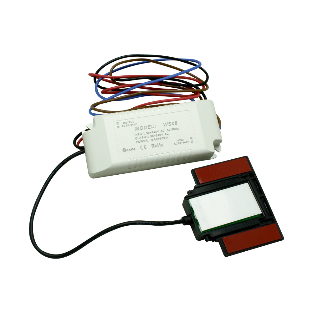 Сенсорный выключатель для зеркал. Устанавливается на заднюю стенку зеркала, реагирует на прикосновение от руки (через поверхность зеркала). Имеет отключаемую подсветку. Вход: 220VAC. Выход: 220VAC, 500W