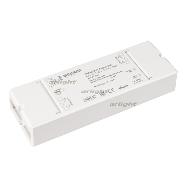 Усилитель-ретранслятор для одного адреса DALI. На входе шина DALI и один адрес DT8 для управления MIX источниками света, на выходе новая линия с широковещательным управлением. Питание 230В, выход 16В@150mA (шина DALI). Применимо для больших проектов, где используется один адрес для синхронного управления большим количеством балластов/драйверов.