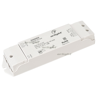 Диммер для управления одноцветной светодиодной лентой по ШИМ и другими светодиодными источниками света с напряжением питания 12-24В. Выполняет основные фукнции: включение/выключение, регулировка яркости. Устройство совместимо с радиочастотными пультами дистанционного управления и настенными панелями управления серии SMART. Возможна привязка до 10 пультов или панелей управления. Питание от 12-24В, максимальная нагрузка 15А, выходная мощность 180-360 Вт (в зависимости от напряжения питания). Габариты устройства 175x45x27 мм.