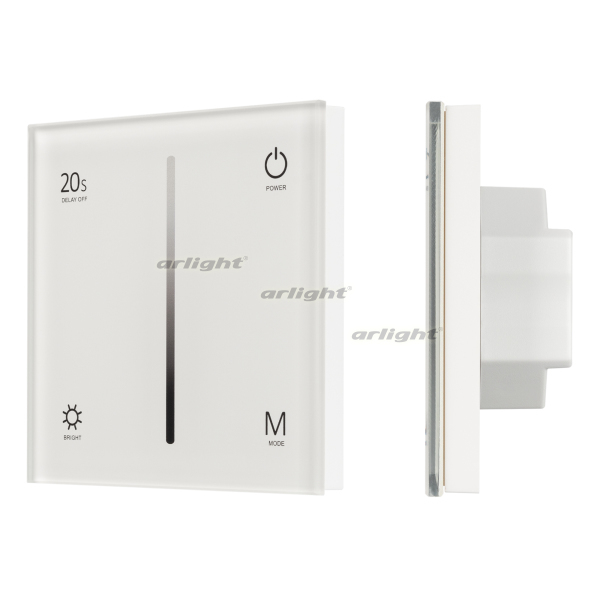 Встраиваемая сенсорная панель белого цвета из стекла, с защитой от мелких царапин. Предназначена для управления одноцветными источниками света (ШИМ) с помощью сенсорной полосы. Основные функции: включение/выключение света, регулировка яркости. Изделие может использоваться как диммер с 4 параллельными выходами для подключения одноцветных светодиодных лент. Возможно применение в качестве однозонного пульта дистанционного управления диммерами и контроллерами серии SMART. Устройство может управляться пультами дистанционного управления или другими панелями серии SMART. К одной панели возможно привязать неограниченное количество диммеров и контроллеров, совместимо с диммерами и контроллерами серии SMART, поддерживающими управление по радиоканалу 2.4G. Питание 12-24В, 4 канала управления, максимальный ток 3А на канал, суммарная мощность нагрузки 144-288 Вт. Габариты: 86х86х33 мм, корпус из пластика, лицевая часть из стекла. Устройство устанавливается в стандартного размера монтажные коробки.