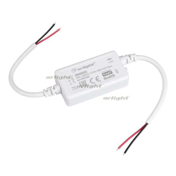 Миниатюрный диммер для управления одноцветной светодиодной лентой по ШИМ и другими светодиодными источниками света с напряжением питания 12-24В. Выполняет основные фукнции: включение/выключение, регулировка яркости. Cовместим беспроводной облачной платформой TUYA и АЛИСА от ЯНДЕКС. Управление со смартфона через приложение SMART LIFE. Устройство совместимо с радиочастотными пультами дистанционного управления серии SIRIUS. Питание от 12-24В, максимальная нагрузка 6А, выходная мощность 72-144 Вт (в зависимости от напряжения питания). Габариты устройства 48х26х13 мм (габариты проводов 150x10x10 мм).