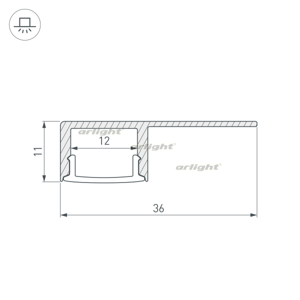 Алюминиевый анодированный профиль для светодиодных лент и линеек, под строительную отделку или плитку. Фиксируется при помощи строительной смеси. Декоративная контурная подсветка углов и стен, линейная подсветка стен и конструкций. Габаритные размеры (L×W×H): 2000x36x11,3 мм. Ширина площадки для ленты 12 мм. Экраны, заглушки и другие аксессуары приобретаются отдельно. Цена за 1 метр.
