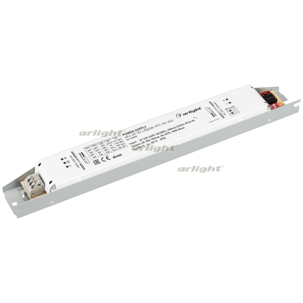 Источник тока серии ARJ-HV без гальванической развязки предназначен для питания одновременно группы светильников, что упрощает монтаж и снижает издержки. Высокая стабильность выходного тока и низкий коэффициент пульсаций обеспечивают свечение без эффекта мерцания. Металлический линейный корпус обладает хорошим теплоотводом и может применяться для встраивания в алюминиевый профиль или нишу. Наличие DIP-переключателя на корпусе позволяет задать необходимые выходные параметры для нагрузки.