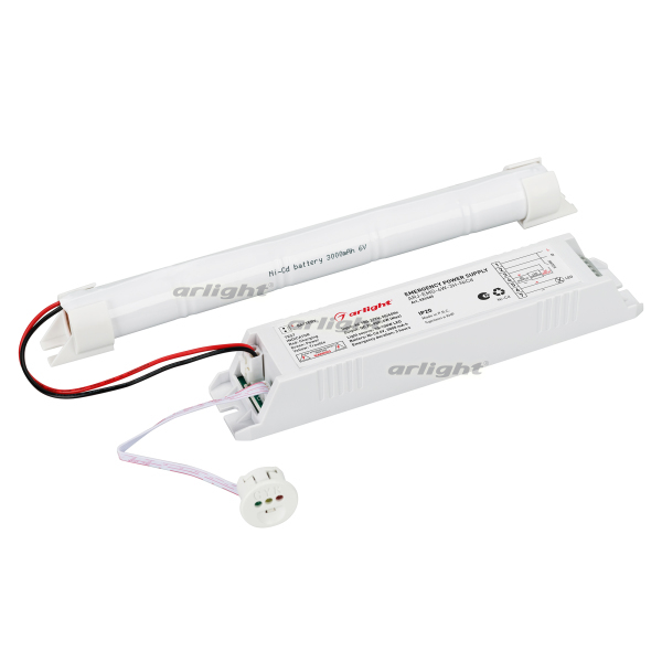 Блок аварийного питания с гальванической развязкой для светильников и мощных светодиодов. Входное напряжение 100-277 VAC. Выходные параметры: 10-90 В, 40-175 mА, 100Вт. Встроенный PFC >0.5. Негерметичный пластиковый корпус с внешней аккумуляторной батареей IP 20. Ёмкость батареи 3000 мА/ч, время работы от АКБ до 3 ч в зависимости от нагрузки. Габаритные размеры длина 206 мм, ширина 40 мм, высота 29мм. Гарантийный срок 2 года.