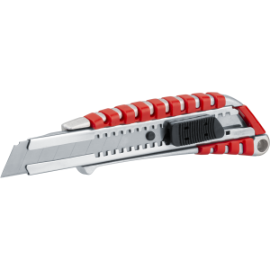 Выдвижное сегментированное лезвие из инструментальной стали имеет двойную заточку, что обеспечивают точный и чистый рез.