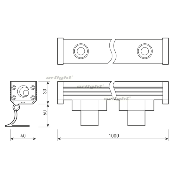 Ультратонкий линейный светодиодный прожектор. Мощность 18W, напряжение питания AC 230V. Светодиоды OSRAM 18 штук. Цвет светодиодов дневной белый 4000K, световой поток 1800 Lm, CRI=80, угол рассеивания 30°. Корпус: алюминиевый сплав и армированное стекло. Цвет корпуса серый, степень влагозащиты IP65. Габариты 1000x40x30мм.