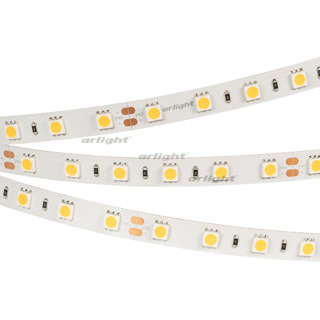 Светодиодная лента RT-B60, открытая. Светодиоды 5060, 60 шт/м (300 шт на 5 м), белая плата, ширина 10 мм, скотч 3M. Цвет ТЁПЛЫЙ 3000 K, цветопередача CRI>85, угол 120°. Питание 24V, мощность 14.4 Вт/м (72 Вт на 5 м). Размеры 5000x10x2.2 мм. Мин.отрезок 100 мм, 6 светодиодов. Цена за 1 м.