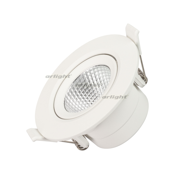 Встраиваемый поворотный светильник "даунлайт". Мощность 6.5 Вт, св. поток 550 лм, 85 лм/Вт, теплый 3000 K, CRI>80, UGR<19, угол 36°, напряжение питания 230 В. Белый круглый корпус из теплопроводящего полиамида, степень защиты IP20, угол поворота оси 30°. Размер: диаметр 90 мм, высота 43 мм. Монтаж встраиваемый, установочное отверстие диаметр 68-80 мм. Пульсация <2%.
