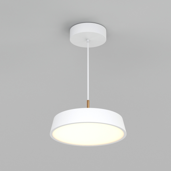 Подвесной светильник. Мощность 17 Вт, св. поток 1258 лм, 74 лм/Вт, теплый 3000 K, CRI>80, угол 120°, напряжение питания 230 В. Белый круглый корпус из стали, экран PMMA, степень защиты IP20. Размер: диаметр 300 мм, высота 50 мм, размер чаши: диаметр 160 мм, высота 35 мм. Монтаж подвесной, длина подвеса 1200мм. Драйвер 21-35 В, 600 мА, пульсация <1%.