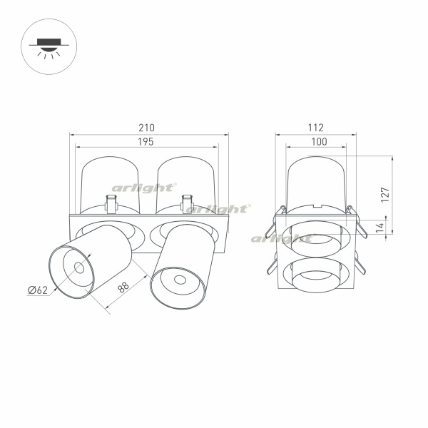 Встраиваемый поворотный выдвигающийся светильник для потолка. Светодиоды 2x10W, цвет БЕЛЫЙ ДНЕВНОЙ 4000K, св.поток 1900лм, угол 24°, RA>90. Корпус белый. Мощность 20Вт, питание AC220-240V. Размеры WxLxH 112x210x127мм. Установка в отверстие 100x195мм. Драйвера в комплекте (2 шт 30-48V 250mA).