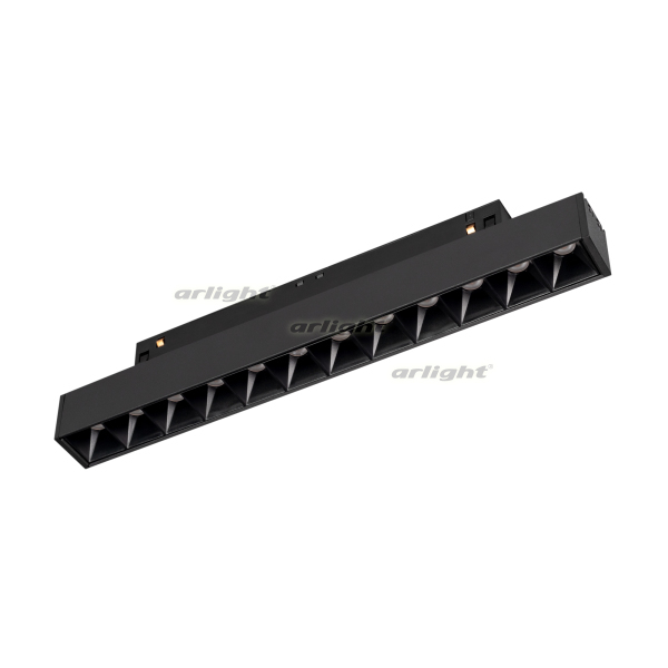 Светильник для магнитных треков MAG-ORIENT шириной 26 мм с управлением DALI. Мощность 8 Вт, св. поток 460 лм, 58 лм/Вт, дневной 4000 K, CRI>90, угол 24°, напряжение питания 48 В. Черный прямоугольный корпус из металл, экран поликарбонат, степень защиты IP20. Размер: длина 235 мм, ширина 22 мм, высота 42 мм. Монтаж на трек MAG-ORIENT. Пульсация <1%.