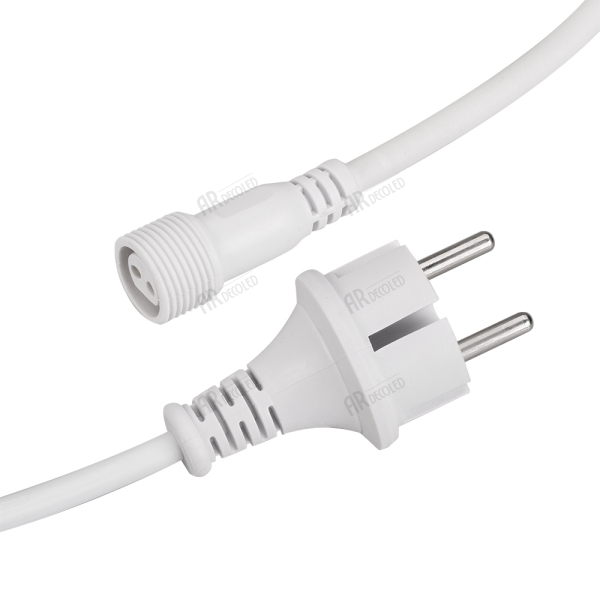 Шнур питания для светодиодных гирлянд "Тающая сосулька". Материал оболочки ПВХ. Цвет провода белый. В комплект входит: шнур питания с вилкой европейского стандарта (IP44), разъём подключения к гирлянде. Длина провода 1.5 метра.