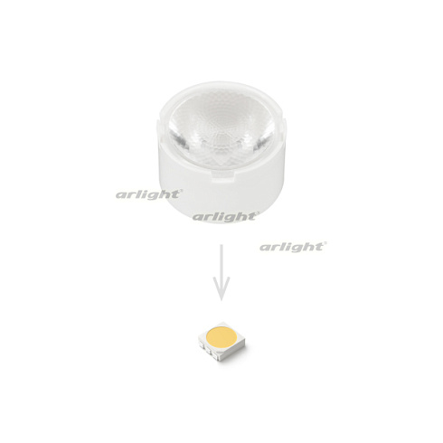 Поставка под заказ от 1800 шт. Одиночная линза со съемным холдером белого цвета для мощного светодиода Emitter, а также для светодиодов SMD: 2525, 2835, 3030, 3535, 5050. Угол обзора: вертикальный 12°, прозрачная микропризма. Материал PMMA. Диаметр 19.5 мм, высота 11.76 мм.