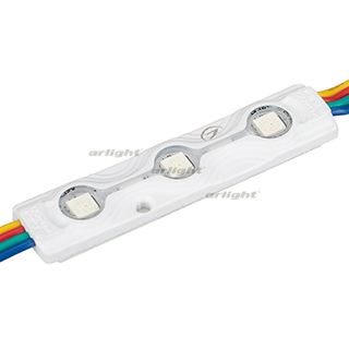 Герметичный светодиодный модуль IP67, RGB, напряжение 12 В, мощность 0.72 Вт, 3 светодиода SMD 5050, угол 120°. 20 шт на проводе, расстояние между центрами модулей 175 мм, длина провода между модулями 109 мм, рекомендуемая глубина установки 50–150 мм. Размер 66х15x4.9 мм. Гарантия 3 года.