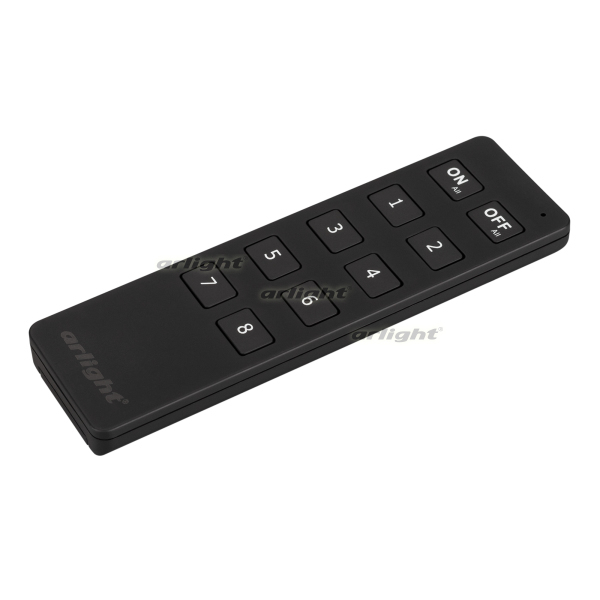 Кнопочный радиопульт 2.4 ГГц черного цвета для управления одноцветным (DIM) источником света. 8 зон управления, управление яркостью с помощью кнопок. Питание 3VDC (CR2032). Габариты 135x40x11 мм. Управляет контроллерами и панелями серии SMART (поставляются отдельно). Настенные держатели приобретаются отдельно (см. аксессуары).
